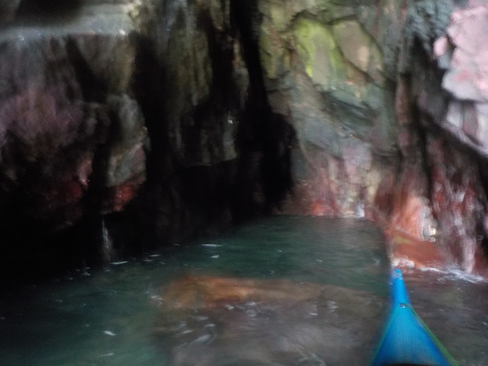 A subtidal vertical rift seacave, facing S. It is 4.5 m wide at the entrance.