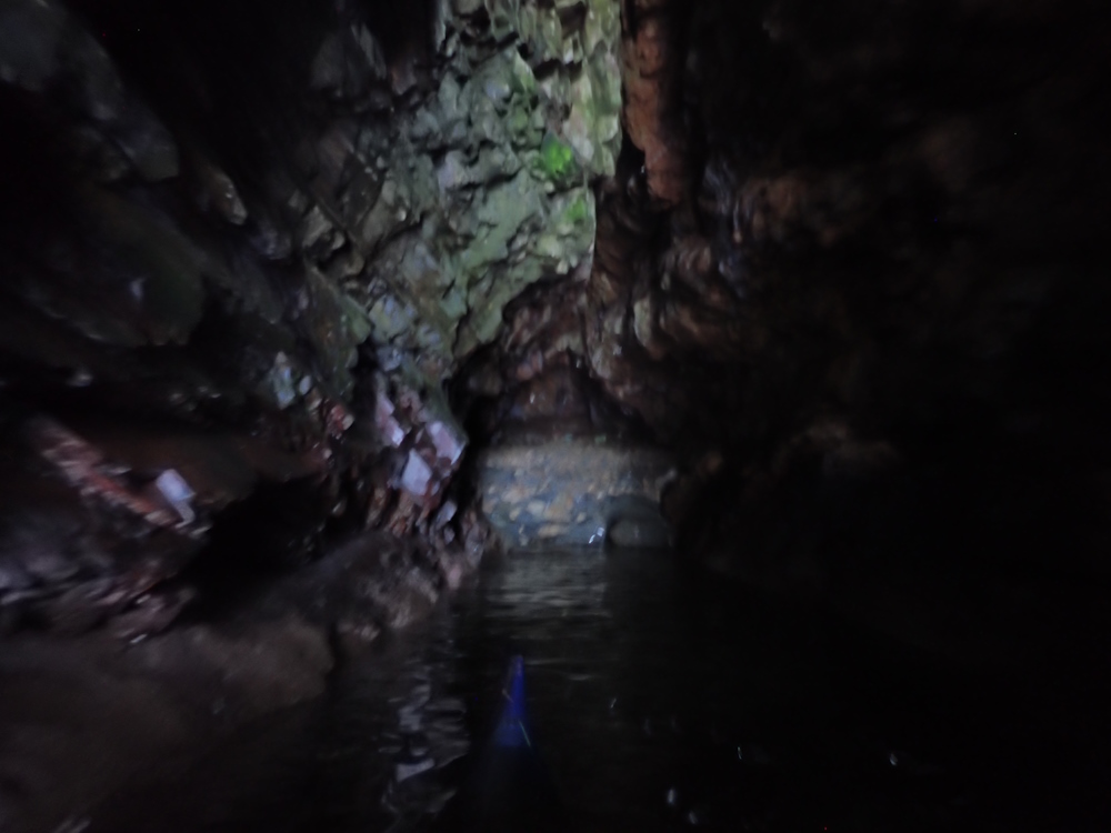 Measured 6/8/24 by N Feilden, using LDM and depth tape. Length by 3 readings so may be some overlap. Needs a beach landing inside to check for any extensions. Alt is ACD.