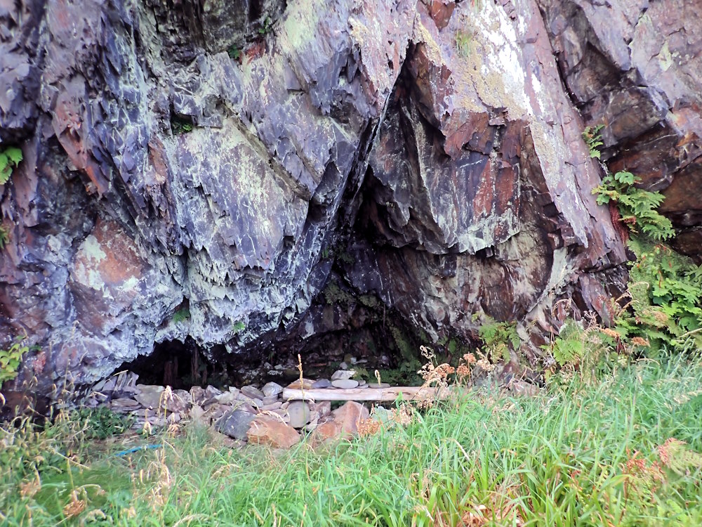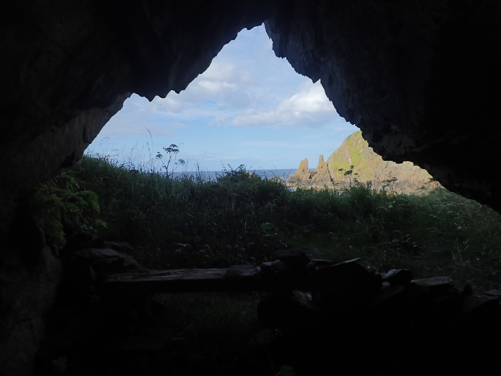 "We now leave ' Dowat ' and enter the shore of 'Auld Haven '-a rugged , rocky shore, seldom used, as it would be difficult for a small boat to get in and out of it, except at full tide. At the bottom of the cliffs-about fifty yards from the high-water mark, is the cave of ' Auld Haven,' a small rock shelter, no doubt used from the earliest times, and used even now by members of that ' nation within a nation,' having no country of their own. One is surprised how those wanderers can get to know of these remote shelters. Perhaps the information has been handed down from father to son during past ages. In spite of the scanty accommodation, this humble lodging has witnessed many of the joys and sorrows of humanity." [Banffshire Field Club]