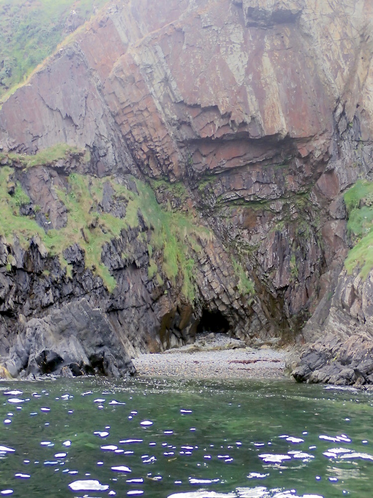 Apparently small, just supratidal cave at base of cliff, facing north.