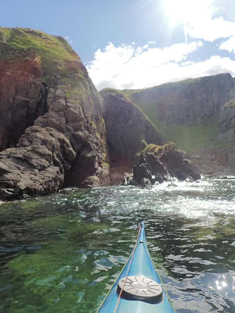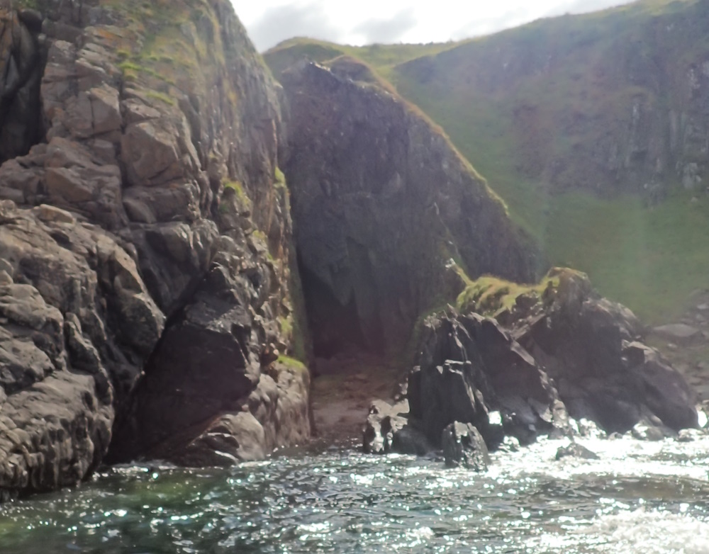 A just supratidal, near vertical rift sea-cave, facing NE, on the west side of Stendreach - a promontory.
