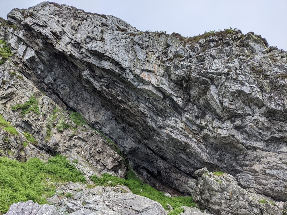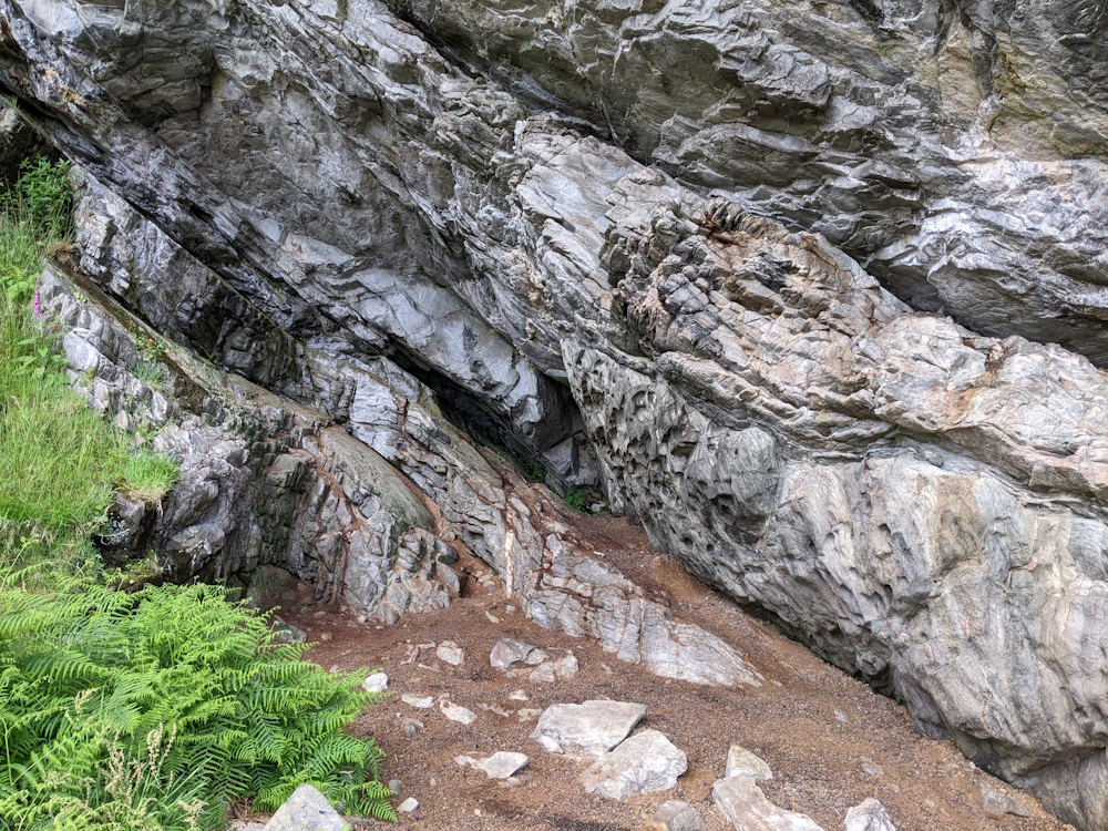 Raised beach sea cave facing SSW.