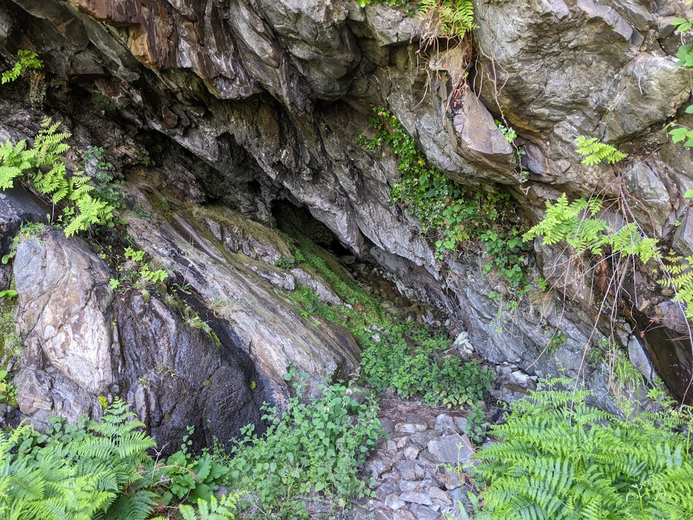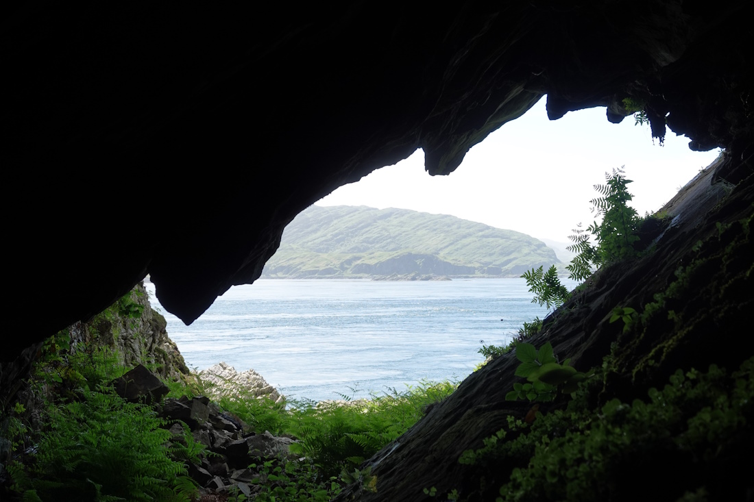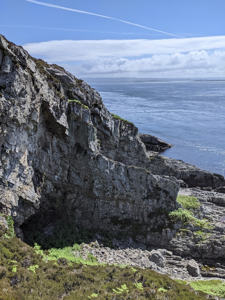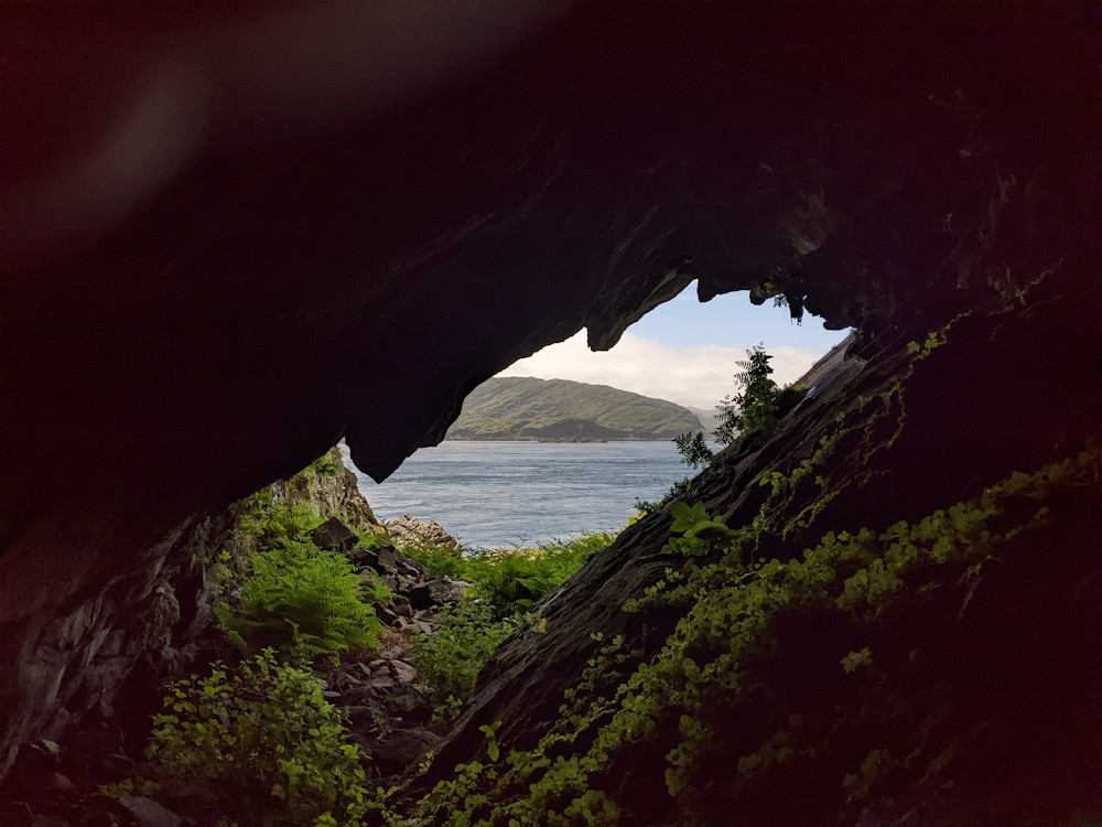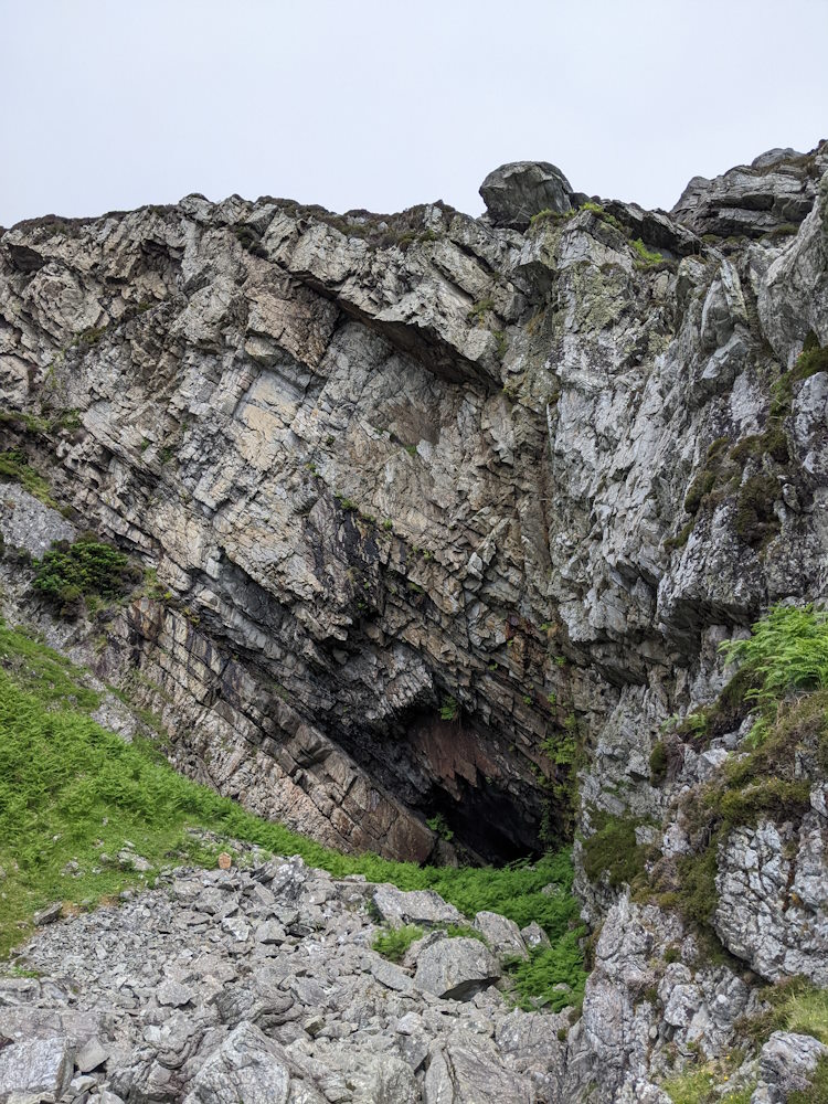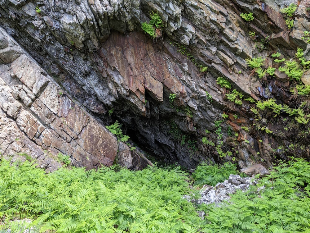 Difficult to access, on steep and jagged section of coastline. Wide entrance, but floor rises up to a crawl into slightly more spacious chamber. [Chris Scaife]