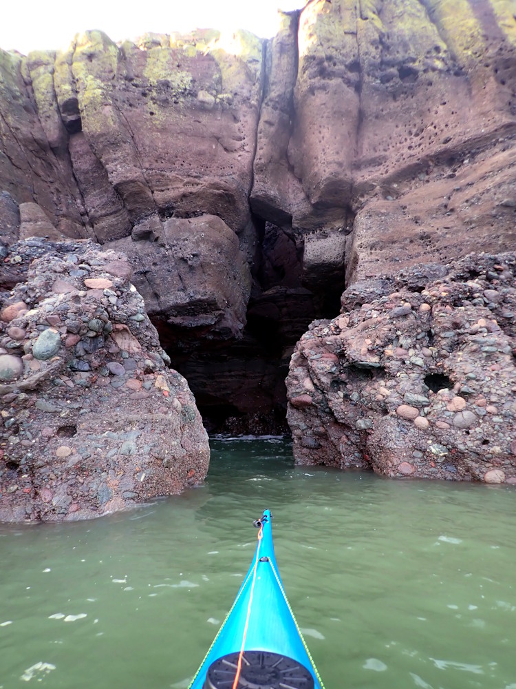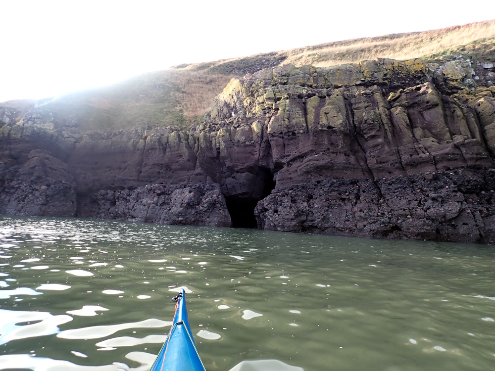 by land - it may be possible to see the gloup from the coast path - see photo 1 and photo 3. The gloup is probably in the lower part of the cliff, just before it goes up vertically.
