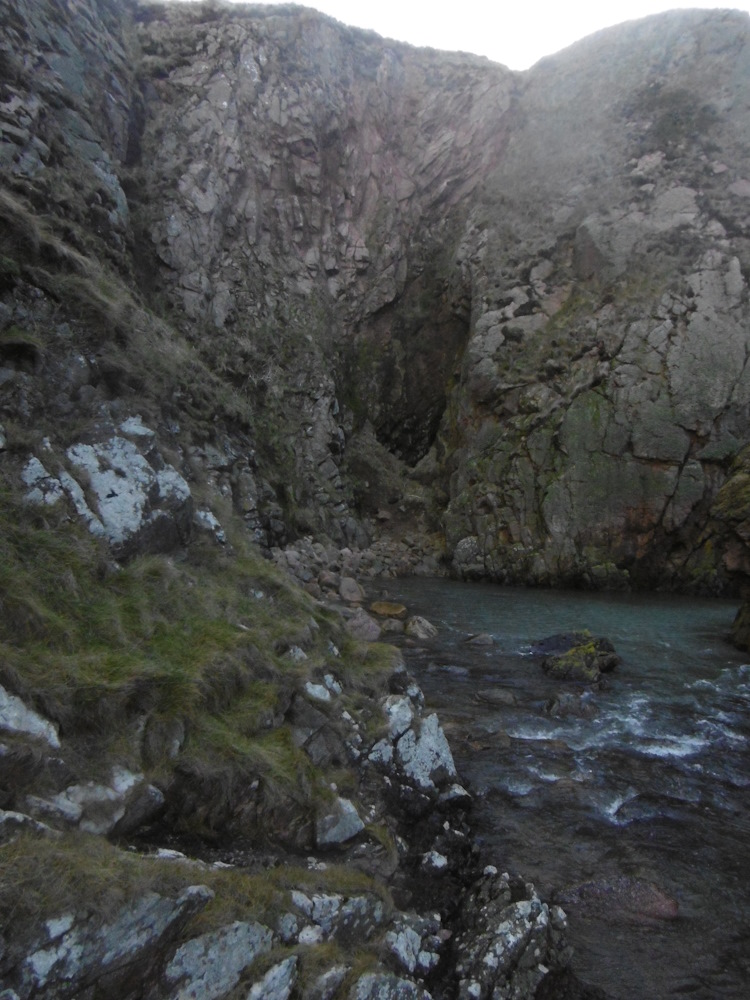 A 'T' plan cave system on the south side of Bullers Pot. A fairly short tunnel going about N by E from this entrance is joined about 3 m inside by an intertidal tunnel running NW by W from the sea (E entrance).