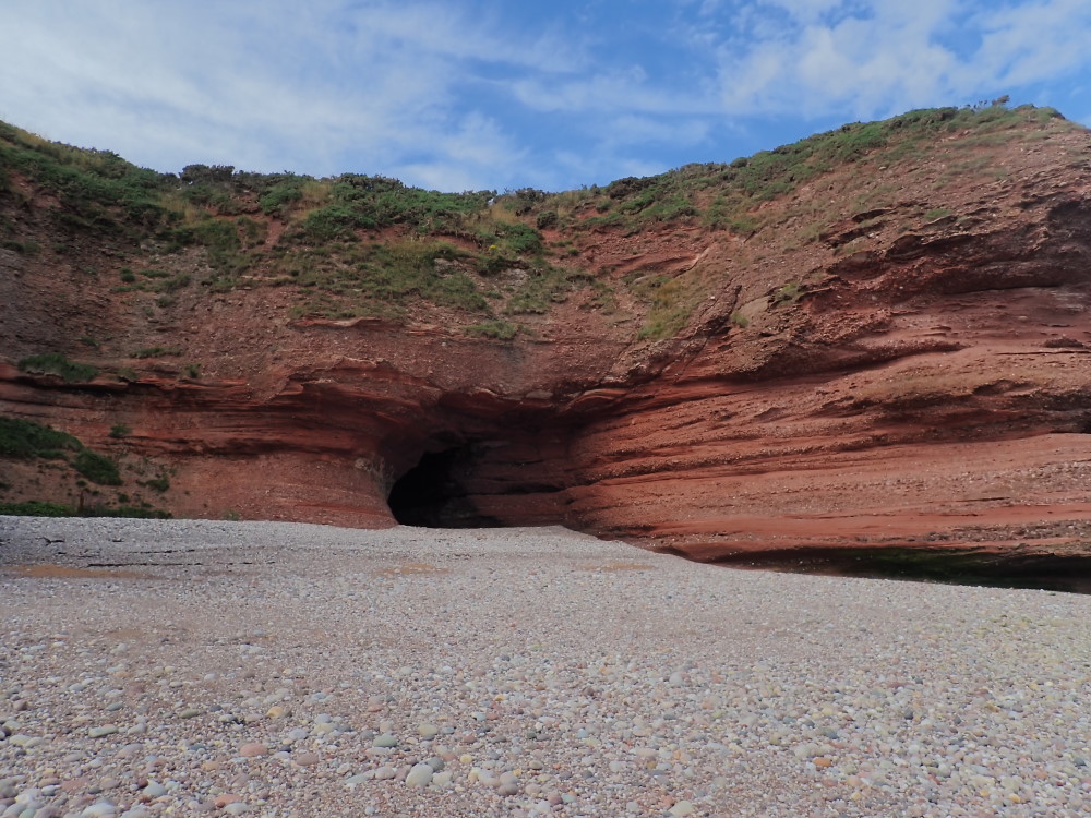 An impressive entrance within conglomeratic beds leads to a roomy, shingle-floored cave passage that retains similar dimensions to its far end where a freshwater spring is present, with its immediate sink. Flowstones and stalagmites can also be found along the southern wall of the cave. The cave was formerly used by the local Freemasons to hold initiation ceremonies (hence the name), as well as building a door across the entrance to replace that from the days of smuggling when it was used as a boat house. Although the cave is raised and dry, access around a small promontory can be can be cut off by tides.