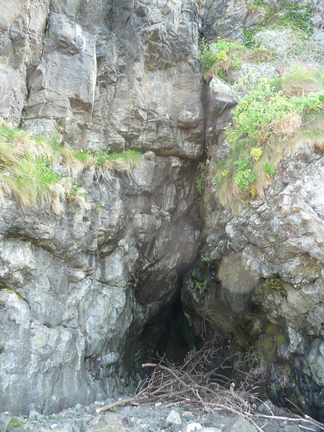 Notes: Probably possible to access this cave along the rocky shore from the east even at high tide except in extreme weather condition but large boulders may cause some problems. Easier at low tide when possible to skirt the rocks and aproach from the foreshore to the north.