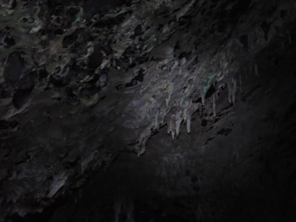 If you are afloat at the join between the tunnels from the south and mid entrances and look up about north-northwest to where the wall meets the ceiling, there is a large sheet of small flowstones. There are some small stalactites high in the north tunnel (photo 7) and white flowstone patches over large areas of walls and ceiling which are best seen with a good light.