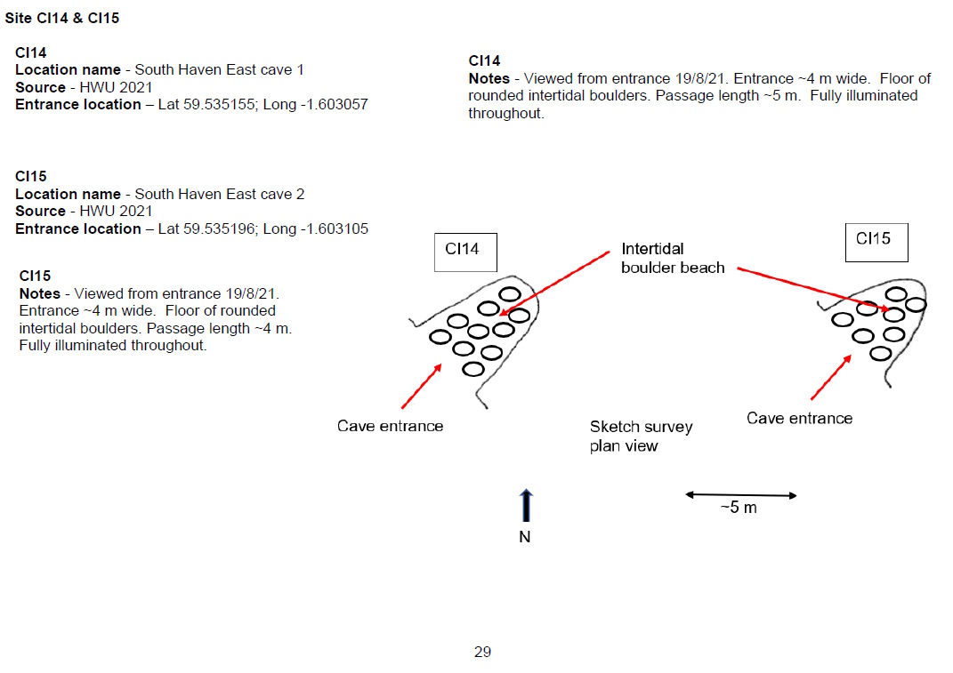 South Haven east cave 1 South Haven east cave 3 South Haven east cave 4 South Gavel Cave 6 Blue Geo Cave 1 Blue Geo Cave 2 (NE entrance) South Gavel Cave 5 Blue Geo Cave 2 (SW entrance) Sloagar Cave SE Sloagar Cave NW South Haven west cave 2 Landberg Cave South Haven west cave 1 Broken Knuckles Cave South Gavel cave 3 Skervalie S cave 2 South Gavel cave 2 Skervalie tunnel/Natural Arch (S entrance) South Gavel Cave 1 Skervalie NW arch Skervalie tunnel/Natural Arch (North entrance) Skervalie NW cave North Haven west Cave 4 North Haven west cave 3 North Haven East Cave Duttfield Cave 1 Hoill Lee Cave 2 (S entrance) Hoill Lee Cave 2 (N entrance) Duttfield Cave 2 North Gavel Cave [2] Hoill Lee Cave [1] (S entrance) Duttfield Cave 3