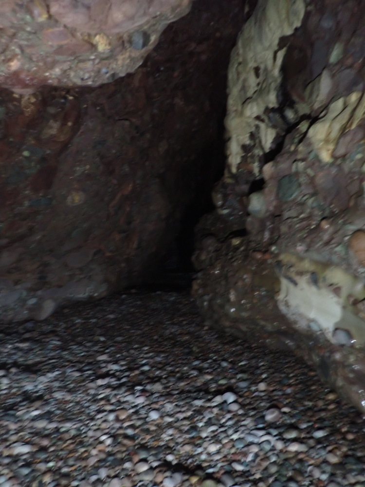 - Photo 23 looking back (SSE), from 37 m in, through the narrow bit seen the other way in photo 20. Widest part of supratidal tunnel.