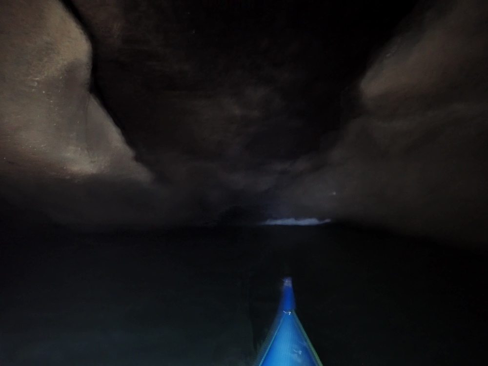 Access: by sea. Needs low tide and low swell for the inner tunnel. Best from Catterline if you want the tide with you on the way back.