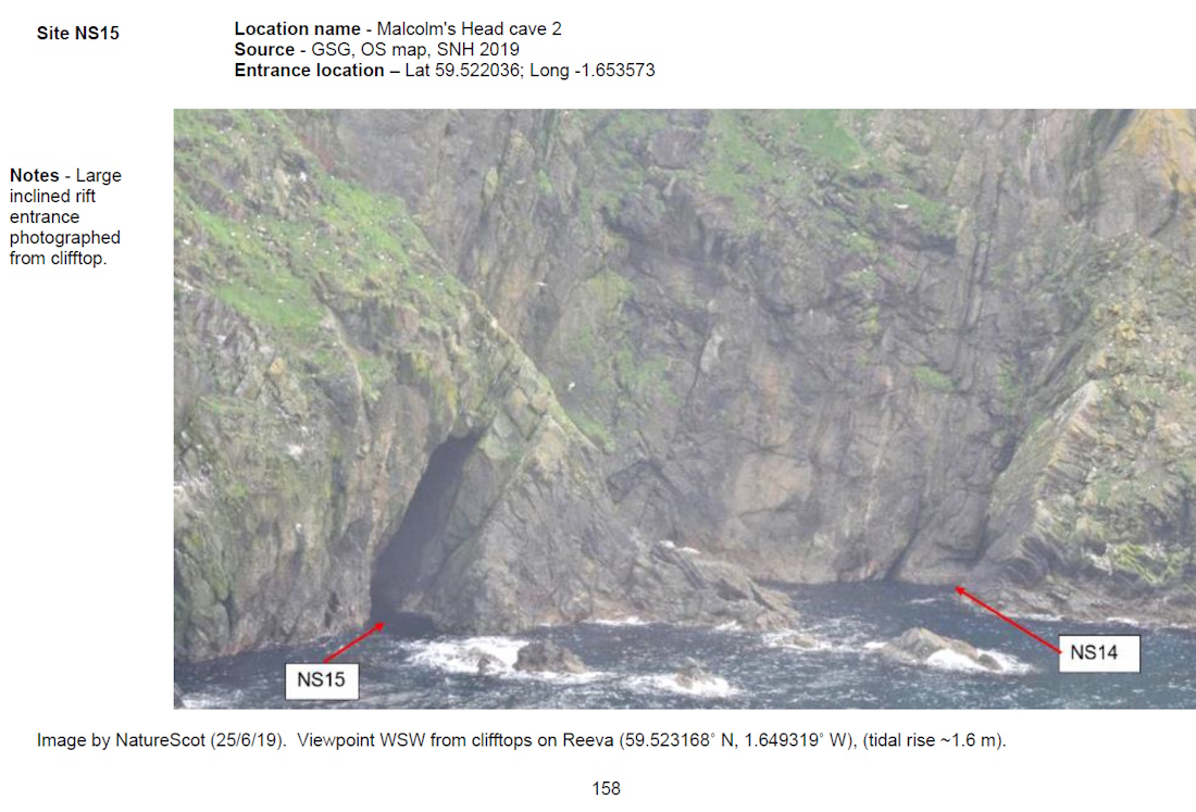 Malcolm's Head east cave 1 Cat Lie Cave Steinsitap Natural Arch Slei Heelor Cave Horse Lie Cave Salt Water Reeva south cave (W entrance) North cave of Lunna Geo Malcolm's Head SW Cave Salt Water Reeva north cave (W entrance) Salt Water Reeva south cave (E entrance) Fogli Stack Cave Salt Water Reeva north cave (E entrance) Dog Geo Cave Round Reeva Natural Arch Round Reeva Cave (west entrance) Arch S of Dog Geo Round Reeva Cave (east entrance)