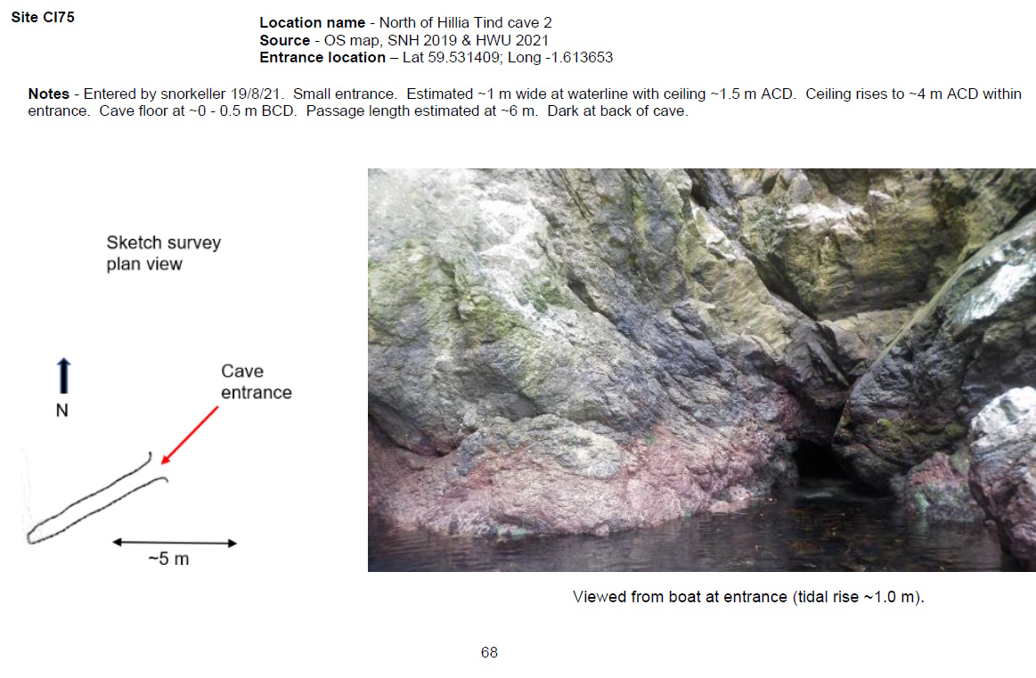 The NGRs of this group of caves (CI75, CI41 & CI40) are, as far as possible, consistent with photo 1, an aerial map layer and the latitudes and longitudes given in Report 1145. But they may need some modification because the aerial has the shoreline in shadow and a larger scale context photo would be really helpful.