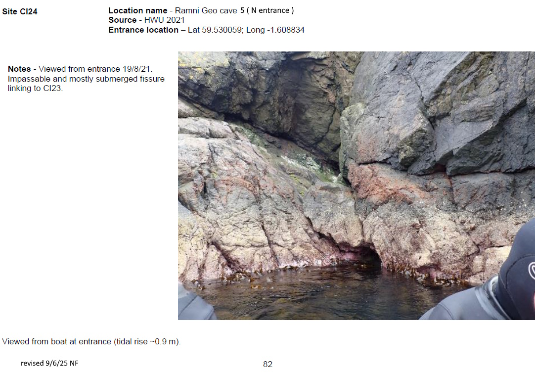 N entrance CI24 at HZ 22223 71633. 'Viewed from entrance 19/8/21. Impassable and mostly submerged fissure linking to CI23.' [Report 1145]