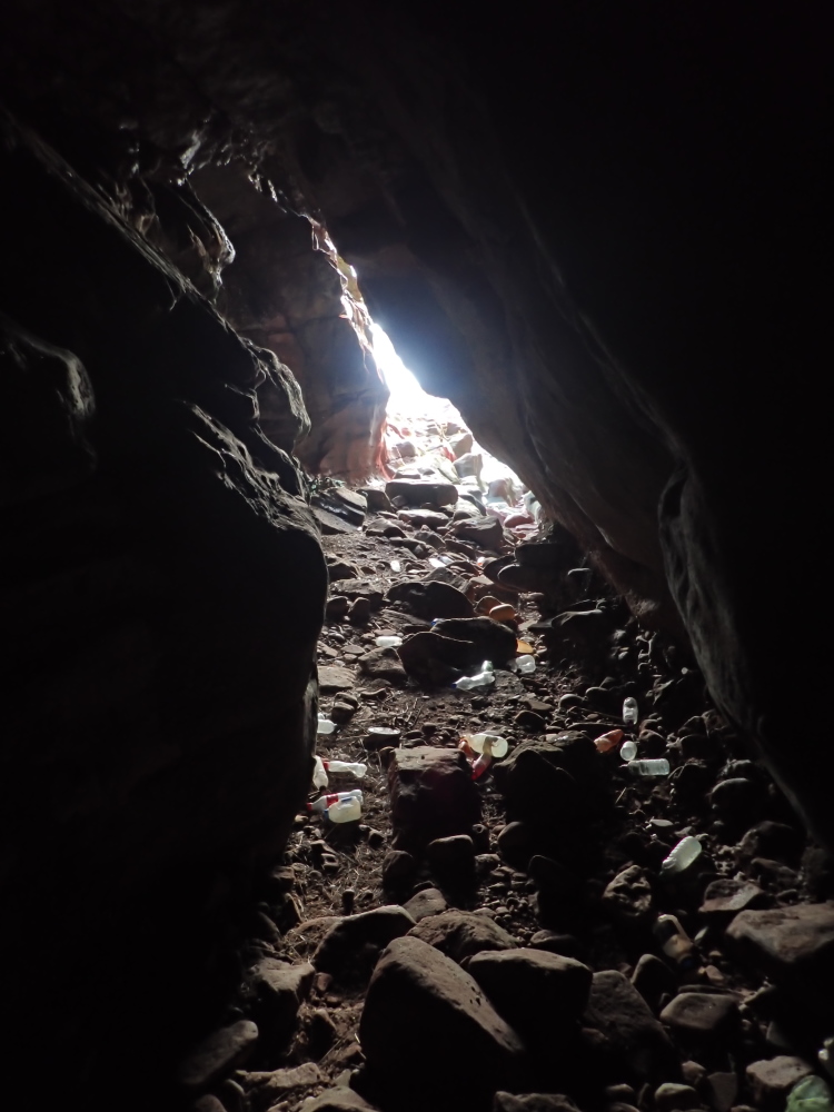 Notes: The name of 'Web Cave' is recent & was first used by Iain Greig in c.2003 after unwittingly placing his head through an impressively large cobweb whilst negotiating the inner squeeze. This cave is questionably labelled as 'Stalactite Cave' on the 1968 OS map, hence this being listed as an alternative name for this entry. This (web) cave should not to be confused with the significantly larger Stalactite Cave located 180m further along the coast [see registry site #4641]. See 'Dynamite Cave' registry entry for discussion regarding the Stalactite Cave name usage.
