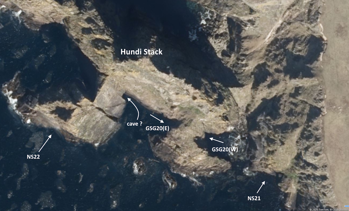 Hundi Stack Natural Arch (East) Hundi Stack Cave Hundi Stack south east cave Gorsins Geo Natural Arch (West) Gorsins Geo Natural Arch (East) Round Reeva Cave (north entrance) Hunds Heelor cave 1 (west entrance) Hunds Heelor cave 2 (east entrance) Hunds Heelor cave 2 (west entrance) Hunds Heelor cave 1 (east entrance) Round Reeva Cave (west entrance) Round Reeva Cave (east entrance) Round Reeva Natural Arch Salt Water Reeva north cave (W entrance) Salt Water Reeva north cave (E entrance)