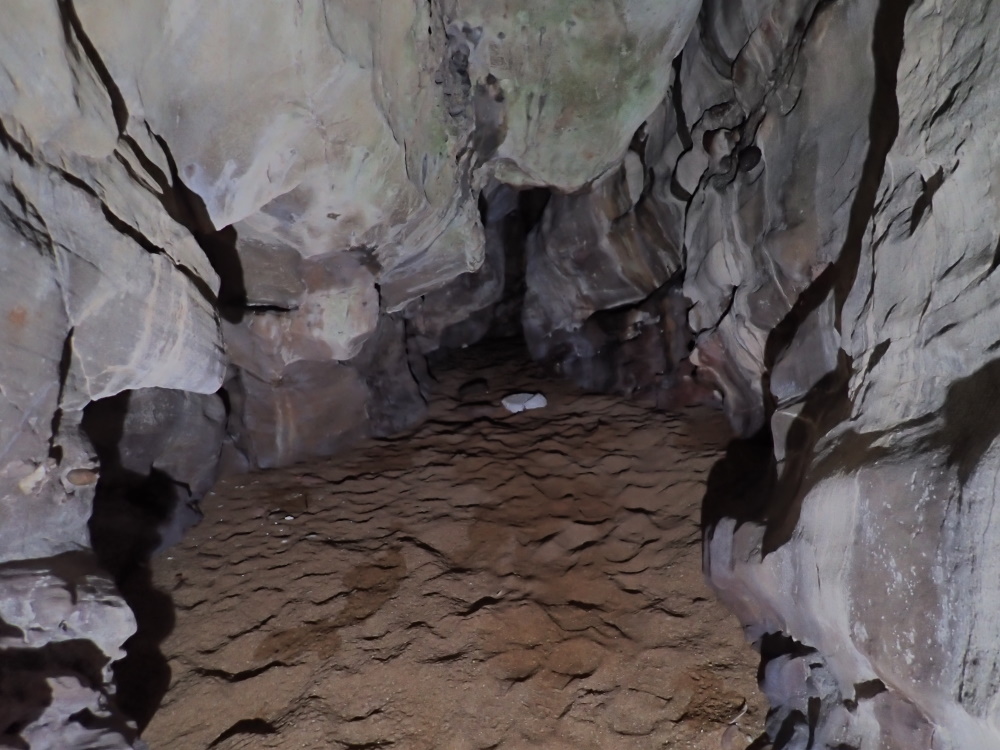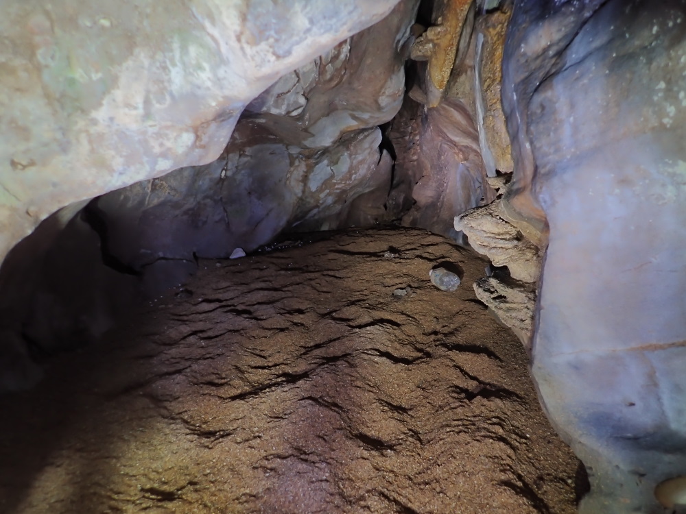 The end of the cave is calculated to be about 7 m short of penetrating to the S side of the narrowest part of the promontory.