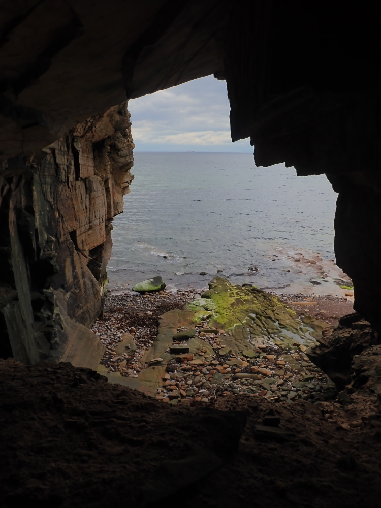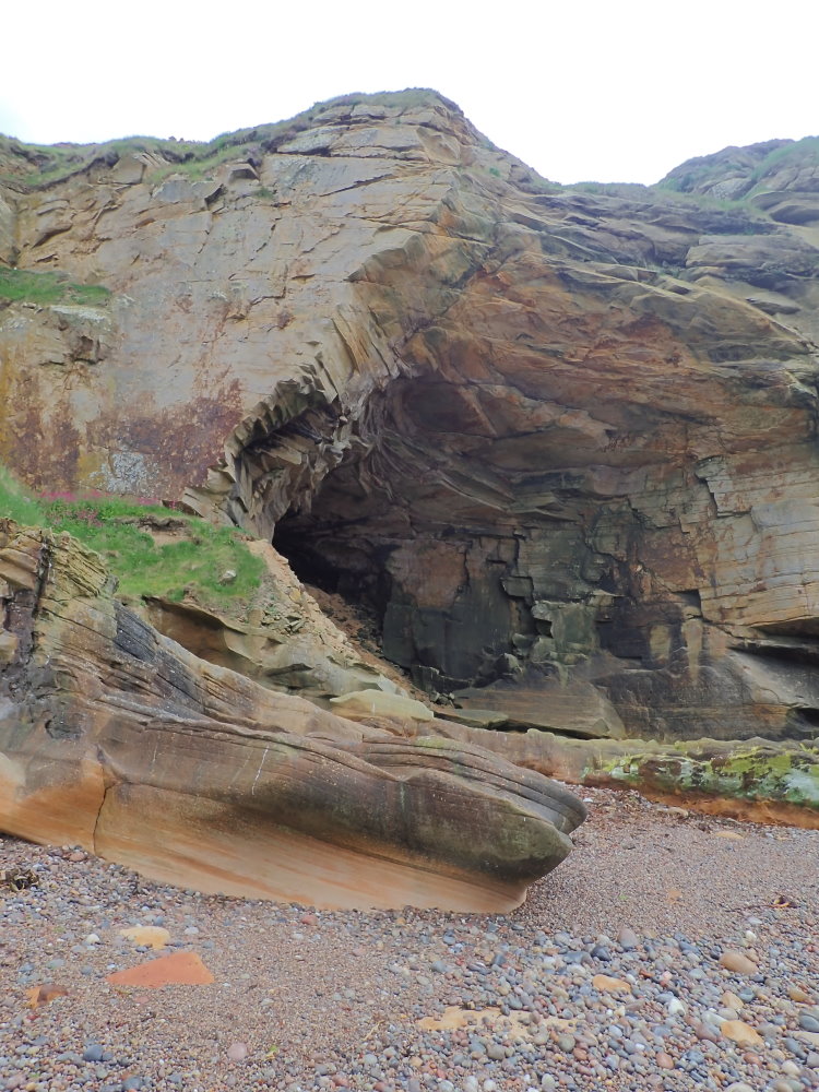 Notes: Access: probably best by sea (from Hopeman) and a landing on the pebble beach just to the east near high water - which gets you over the wave cut platform.