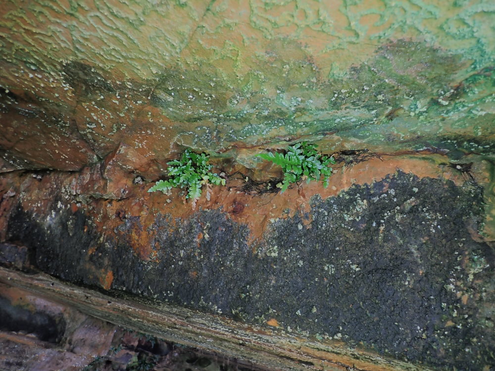 It has some ferns and there were also a couple of orb webs at the sides on 10 June 21, one with its spider at the centre.