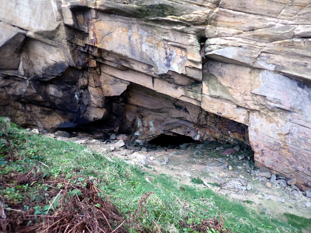 Notes: Access: down from the path at about NJ 16952 70338 through disused Covesea Quarry workings and then a steep rock debris slope. Slightly easier at the E end. Bottom half of tide.