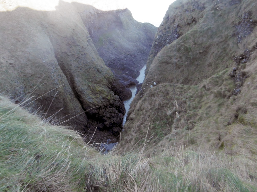 A tall, mostly supratidal, very short rift sea-cave which, according to the Ist Ed 25" OS, is the S end of Dunnimaol Subterraneous Passage.