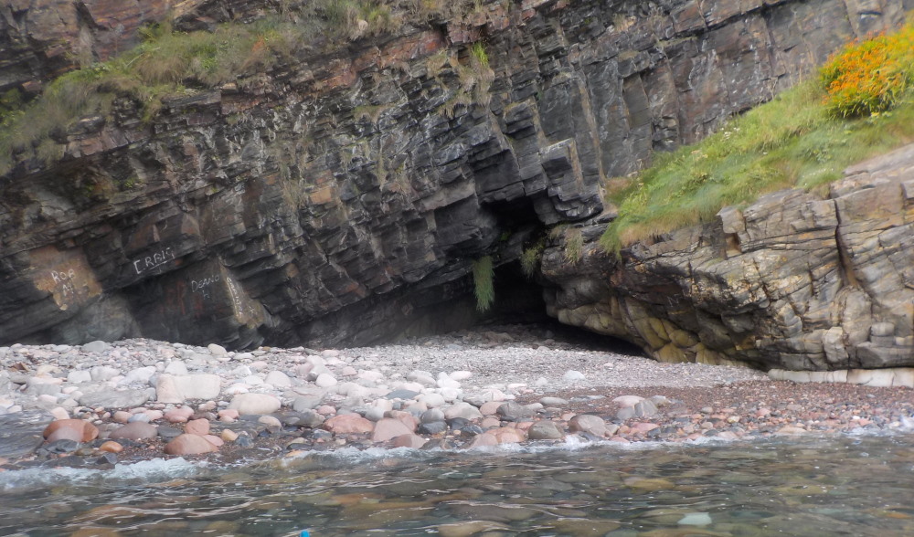 Supra tidal alcove with small caves, one each side. This, the smaller one, faces S.