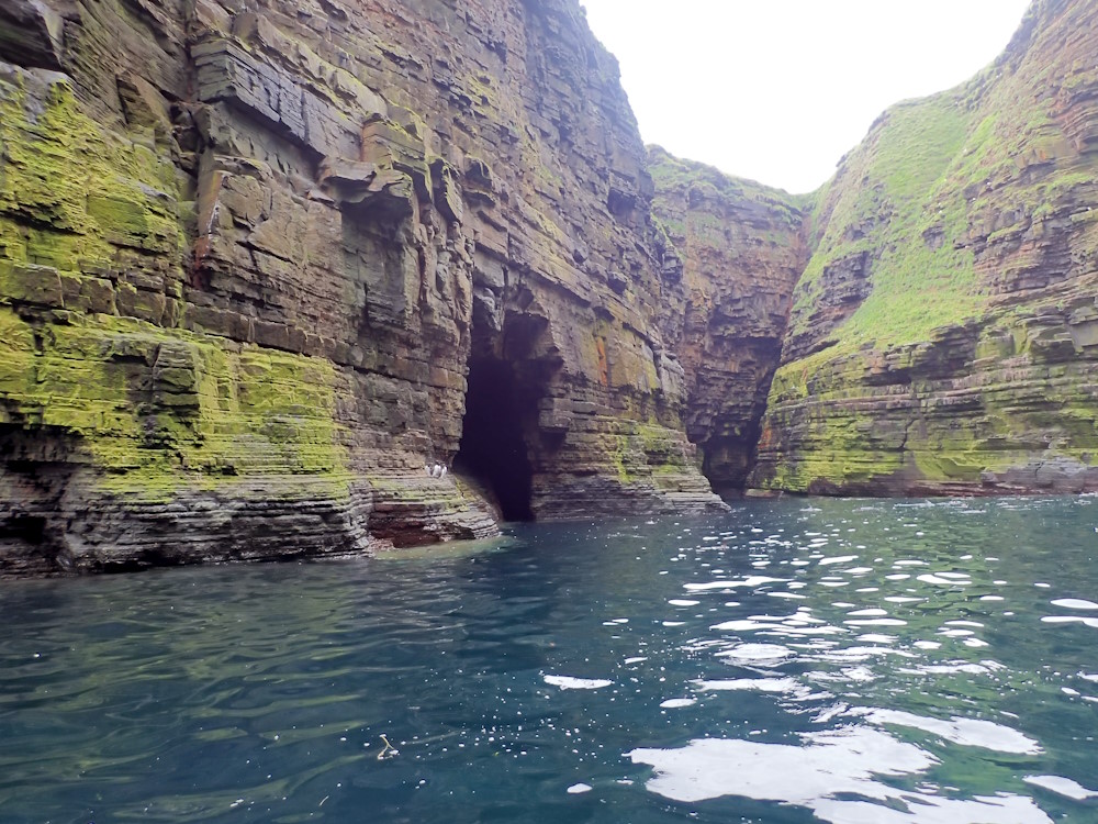 Notes: Access: by sea eg E round Duncansby Head from harbour N of John o' Groats at ND 37982 73468. This would best be done near the end of the flood tide so that the return can be made during slack high tide, or at the very beginning of the ebb.
