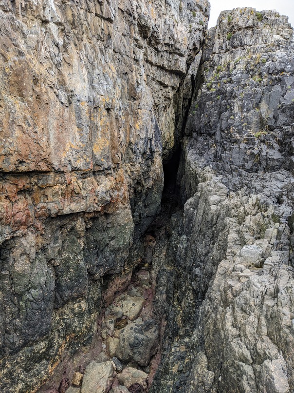 Walking-sized intertidal sea cave at the head of a secondary inlet near the mouth of the Geodha Smoo.