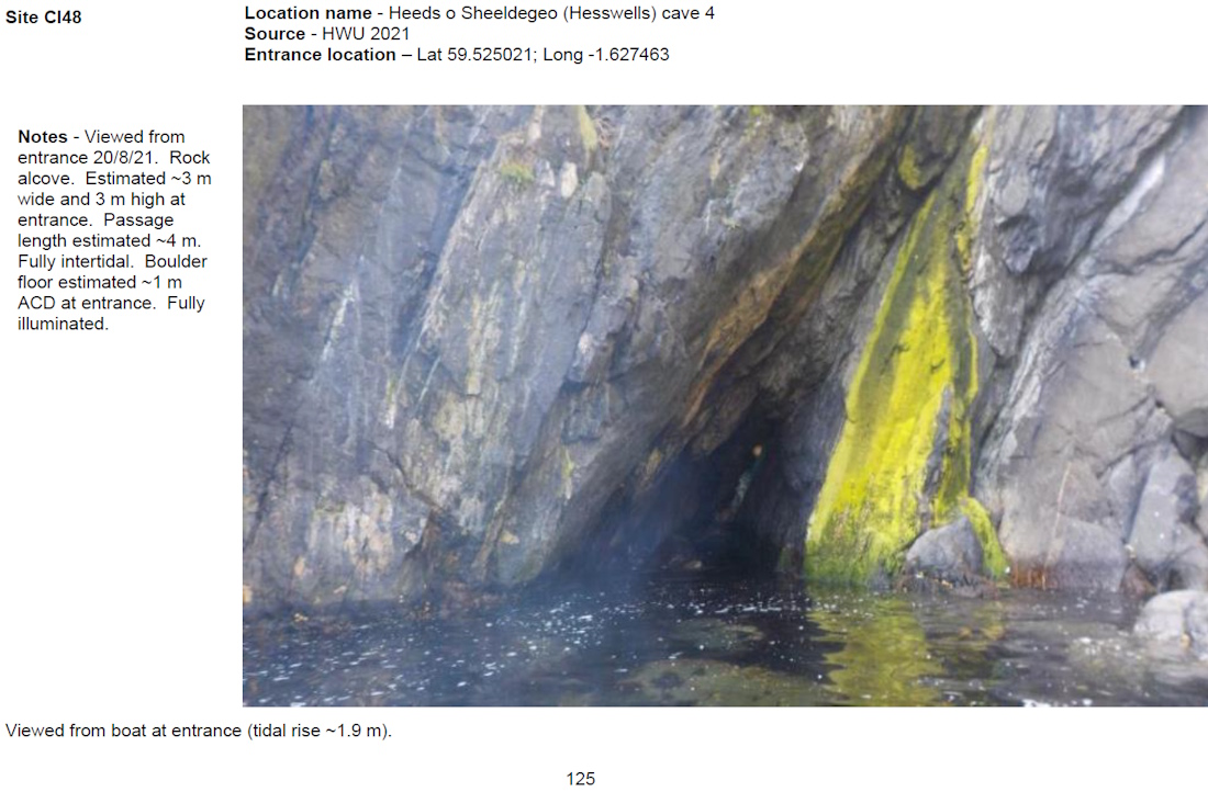 Kame of Fair-heelor Cave 1 (W entrance) Kame of Fair-heelor Cave 1 (E entrance) Kame of Fair-heelor Cave 2 Heeds o Sheeldegeo (cave 3) Heeds o Sheeldegeo cave 2 Heeds o Sheeldegeo cave 1 Small Trunket Natural Arch Shaldi Cliff Arch 3 (NE entrance) Shaldi Cliff Cave 5 Shaldi Cliff west tunnel (SW entrance) Shaldi Cliff east tunnel (SW entrance) Shaldi Cliff cave 2 Shaldi Cliff west tunnel (NE entrance) Shaldi Cliff east tunnel (NE entrance) Shaldi Cliff cave 1 Peerie Rip-heelor